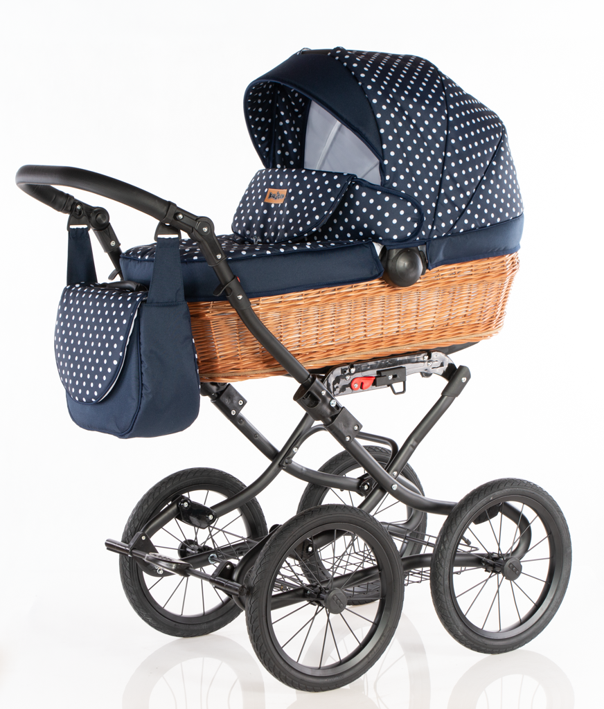 Wózek wiklinowy - Granotowe groszki